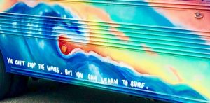 a quote on the side of our bus “YOU CAN’T STOP THE WAVES. BUT YOU CAN LEARN TO SURF.” Jon Kabat Zinn