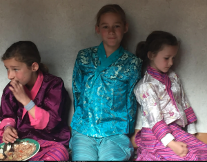 In Phobjika valley, winter migration grounds for the blacked neck crane, the kids politely sat on the floor of a farmhouse and ate red rice, fried fresh cheese, and pork belly. While they didn’t clean their plates, they also did not balk or turn up their noses to our host’s meager offerings.