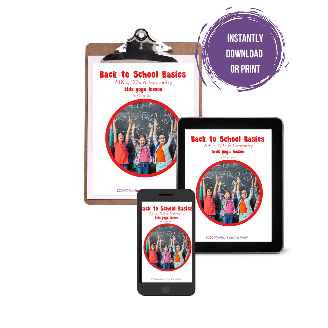 This original YoPlay Yoga For Kids Lesson Plan contains easy to follow, step-by-step instructions. Written by YoPlay Yoga For Kids® Founder, Jen Byer, she’ll show you how to infuse this “Back to School Basics” theme into a fun light hearted kids yoga class, specifically designed for 3-9 yr. olds.