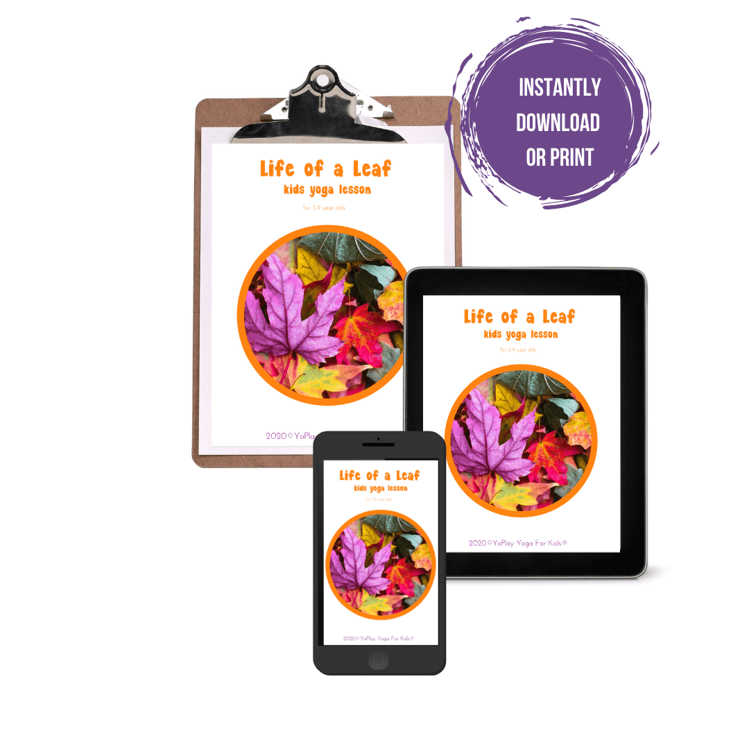 This original YoPlay Yoga For Kids Lesson Plan contains easy to follow, step-by-step instructions. Written by YoPlay Yoga For Kids® Founder, Jen Byer, she’ll show you how to infuse this “Life of a Leaf” theme into a fun light hearted kids yoga class, specifically designed for 3-9 yr. olds.