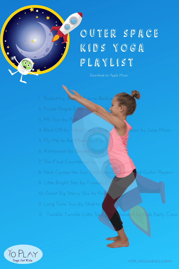 This Outer Space Playlist includes a dozen out of this world songs for any outer space theme. This playlist is related to our “Reach for the Stars: Outer Space” kids yoga lesson plan. In the lesson, we explore through yoga and mindfulness, an adventurous sequence that will have you moonwalking your way through the Milkyway, catching plunging asteroids and discovering where your star shines brightest.